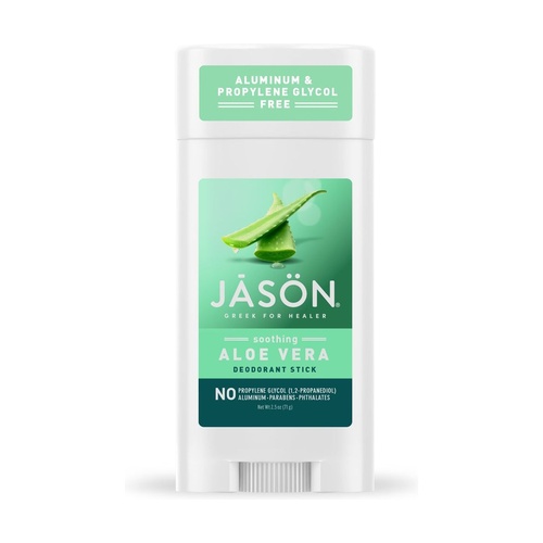 Jason Aloe Vera Deodorant Stick es un desodorante en formato stick de 71 g que utiliza ingredientes de origen natural para neutralizar el mal olor corporal sin bloquear la transpiración. Está formulado sin sales de aluminio, parabenos ni ftalatos, y no ha sido testado en animales (vegano). Contiene ricinoleato de zinc y almidón de maíz que ayudan a neutralizar el olor, y extracto de semilla de pomelo con propiedades antimicrobianas para combatir las bacterias responsables del olor. El aloe vera y la vitamina E calman y suavizan la piel de las axilas, aportando una sensación nutritiva y fresca. Está pensado para uso diario en las axilas y se aplica sobre la piel limpia y seca; como todos los desodorantes naturales, puede ser menos eficaz en días de calor intenso o sudoración elevada, pero resulta suave con la piel sensible.