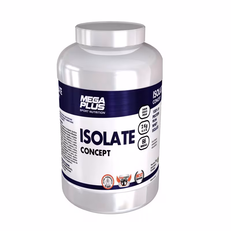 Isolate concept fresa de Mega Plus es un complemento alimenticio con un elevado contenido proteico (88,4%) que combina aislado de proteínas con un complejo equilibrado de aminoácidos, para ayudar a construir el músculo.