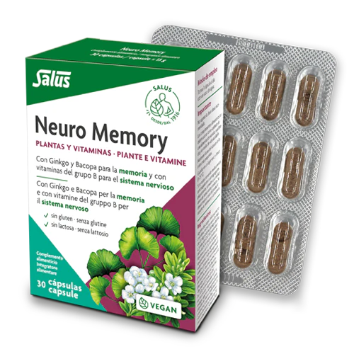 Neuro Memory 30 cápsulas es un complemento alimenticio diseñado para favorecer la memoria y las funciones cognitivas mediante una combinación de extractos vegetales y vitaminas esenciales. Está formulado con extracto seco de hoja de Ginkgo biloba y extracto de Bacopa monnieri, plantas tradicionalmente asociadas con la mejora de la memoria, la concentración y la agudeza mental, además de vitaminas del grupo B (niacina, B1, B6 y B12) que contribuyen al funcionamiento normal del sistema nervioso y de la función psicológica.